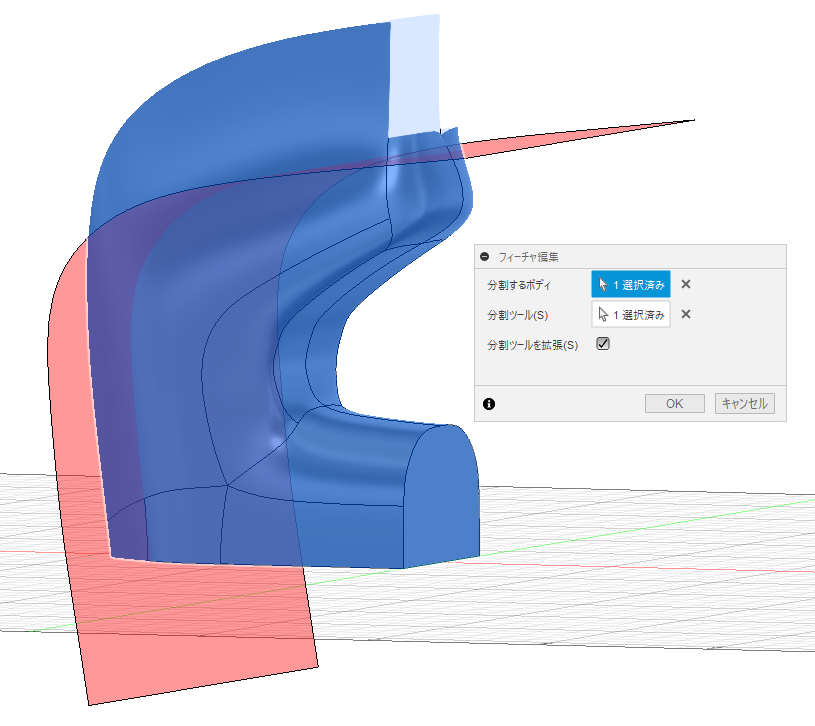その後ソリッドボディに変換し、不要な部分は[ボディを分割コマンド]を使って整えていきました。