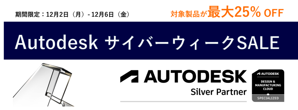 2024年12月2日(月)~2024年12月6日(金)の期間限定で、オートデスク製品をお得に購入できるサイバーウィークセールを開催いたします。